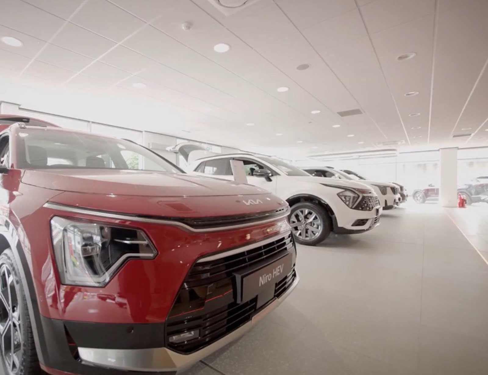 The finished showroom now reflects KIA’s brand image, bright, inviting, and technologically advanced, while delivering practical benefits in energy savings and ease of operation.